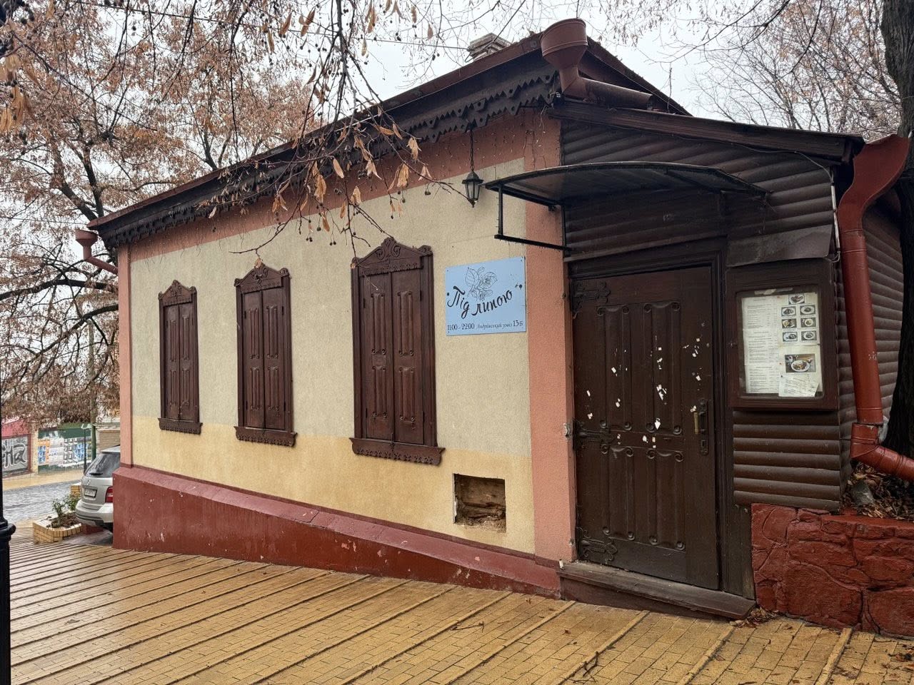 Довідка. Будівлю вважають найстарішою садибою на Андріївському узвозі. Її побудували в 1846 році. До 2025 року там працювало кафе «Під липою», відоме багатьом киянам. Згодом заклад закрили, а орендарів виселили. У КМДА тоді пояснили це аварійним станом споруди.