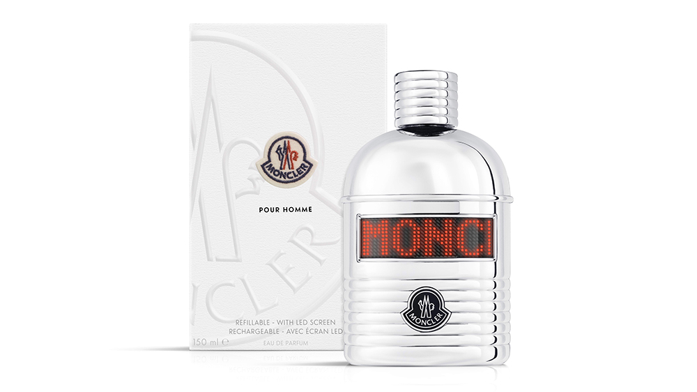 Напис «Moncler» з’являється на LED-екрані, вмонтованому у флакон. Його особливість полягає у тому, щоза допомогою спеціального додатку напис можна змінити на власний.