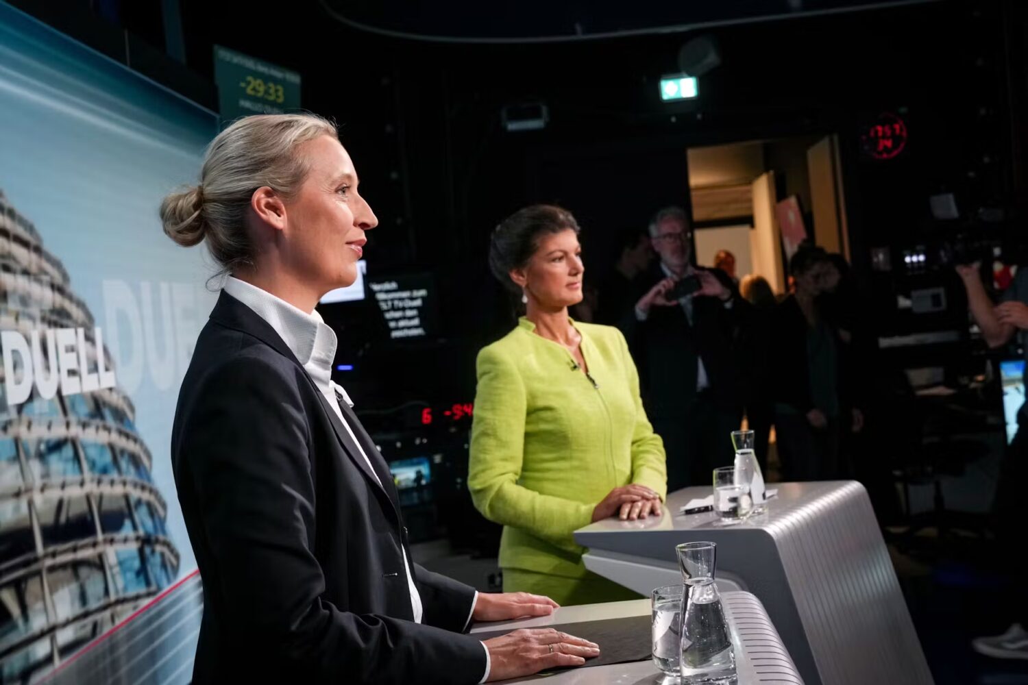 Лідерки ультраправої «Альтернативи для Німеччини» (АдН) Аліса Вайдель та ультралівого Альянсу Сари Вагенкнехт (АСВ) Сара Вагенкнехт під час теледебатів погодилися, що потрібно припинити військову підтримку України.
