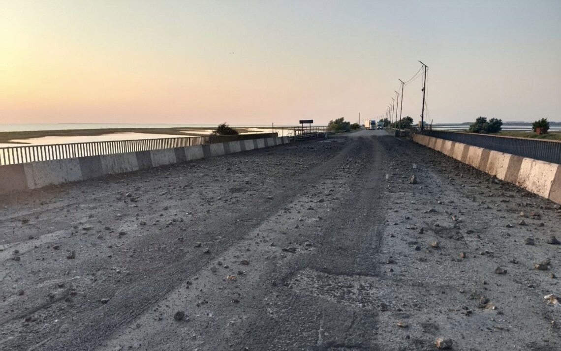 На мосту між Херсонщиною і Кримом поблизу Чонгара сталися вибухи. Удар завдали нібито британськими ракетами Storm Shadow. На мостах пошкоджено дорожнє покриття. Жертв серед людей немає.