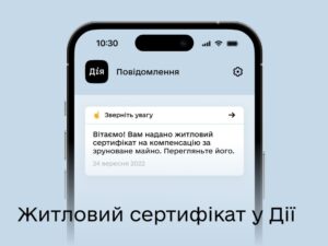 Загалом створили 1897 сертифікатів з надання компенсації за знищене майно на суму понад 2,7 мільярда гривень. Щоб отримати такий сертифікат, необхідно подати заяву про зруйноване майно через застосунок Дія, після чого комісія визначить суму компенсації. Всю необхідну інформацію після подання заяви можна буде дізнатись у Дії.