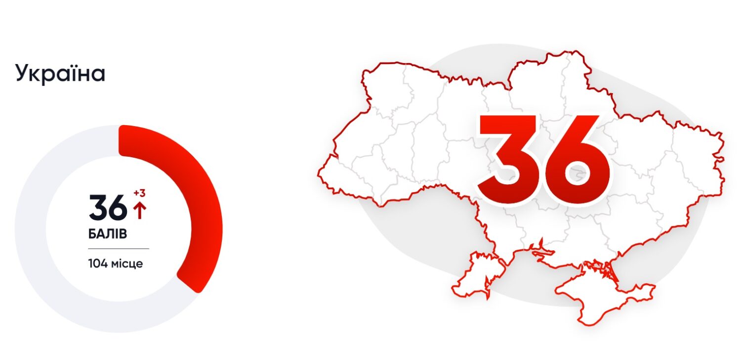 Та при цьому Україна зросла в рейтингу за рік на цілих три бали — це один з найкращих показників у світі. Це дозволило нам стати однією з 17 країн, які продемонстрували свій найкращий показник за весь час. Від часу Революції Гідності, за десятиліття індекс України зріс на 11 балів — це значний прогрес. Що характерно — зростання відбувається навіть попри повномасштабну війну проти РФ. Серед наших сусідів зростання у 2023 році показали лише Молдова та Словаччина. Румунія та Угорщина залишилися на одному рівні (46 і 42 бали відповідно), а показники Польщі, Білорусі та РФ знизились.