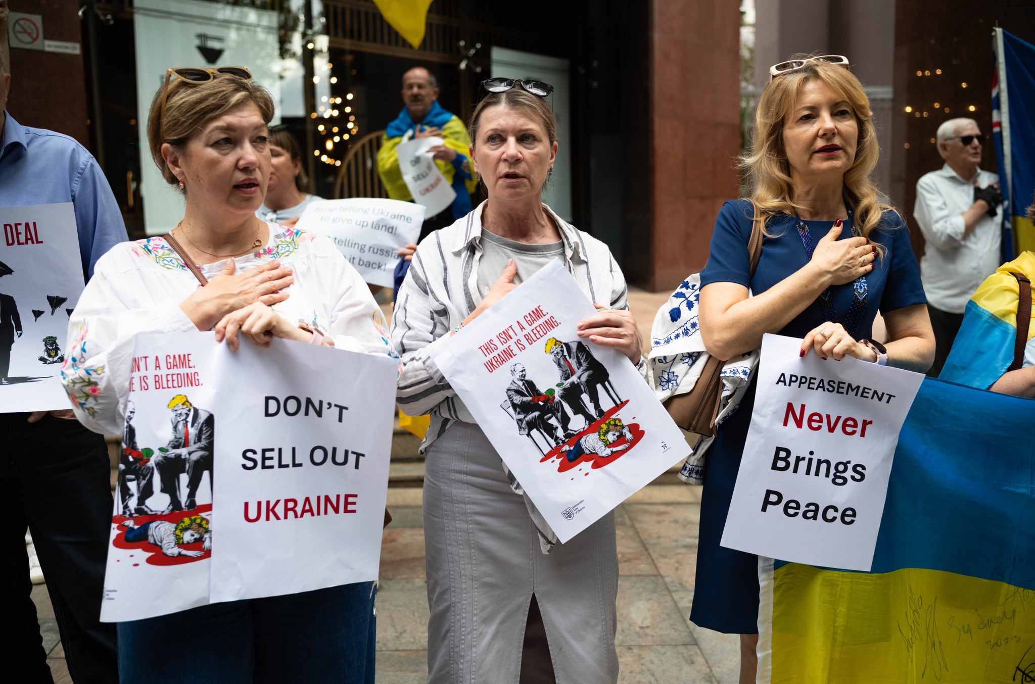 По всьому світу біля посольств США проходять акції проти нав’язаного Україні «мирного плану». Про це повідомили організатори.