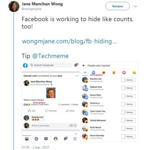 Джейн Манчун Вонг показала, що список користувачів, які лайкнули пост або відреагували на нього, буде доступний, але кількість цих людей буде прихованою.
