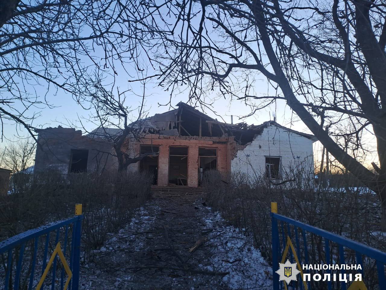 Через влучання снаряда в будівлю сільської ради поранення отримали двоє дітей. 10-річному хлопчику ампутували ногу, 13-річна дівчинка перебуває у лікарні з осколковими пораненнями. Під час огляду місця влучання поліція виявила тіло жінки, її особу встановлюють.
