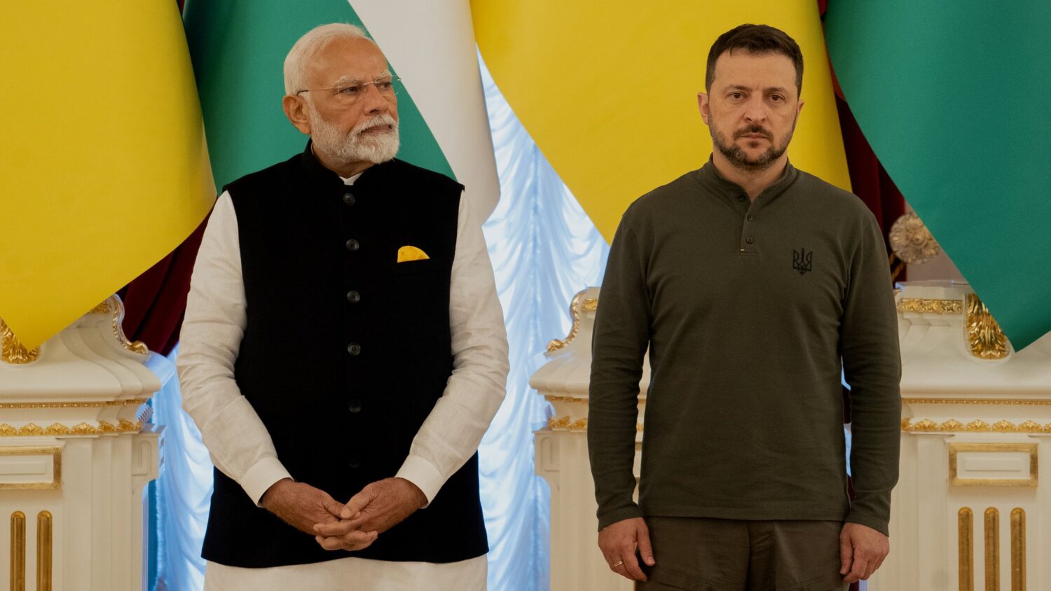 Прем’єр-міністр Індії Нарендра Моді на спільній пресконференції з Володимиром Зеленським закликав президента України «діяти шляхом переговорів» у війні з Росією. За його словами, Індія готова надати підтримку та «зіграти свою роль для миру». Про це пише Суспільне.