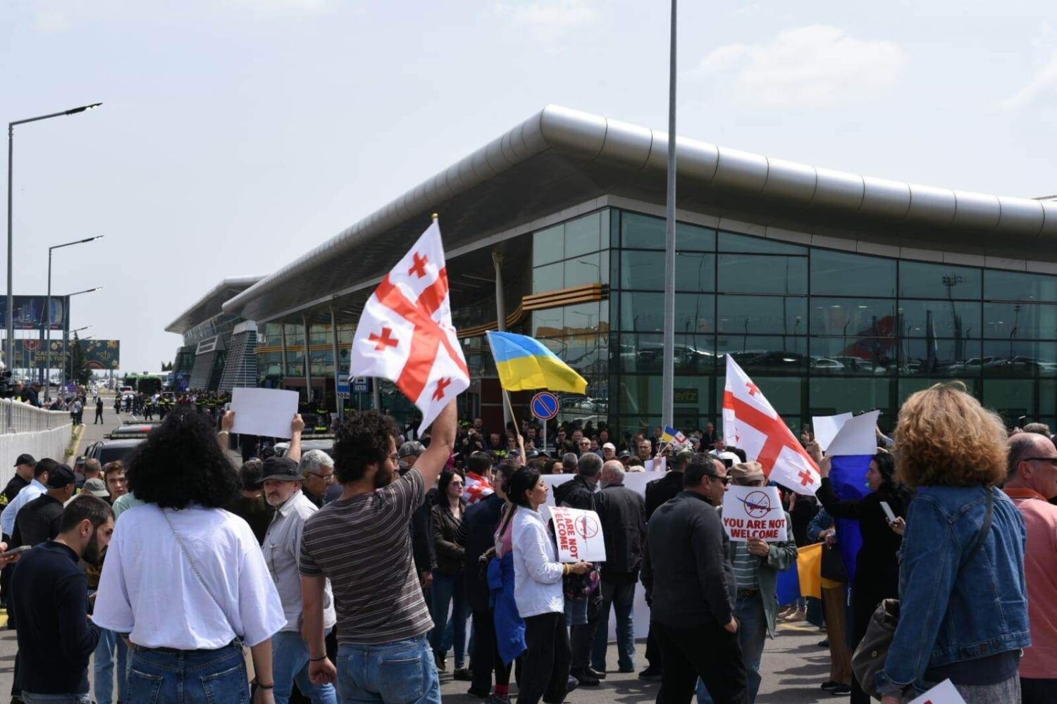 Під аеропортом у Тбілісі протест. До Грузії прилетів літак із Москви