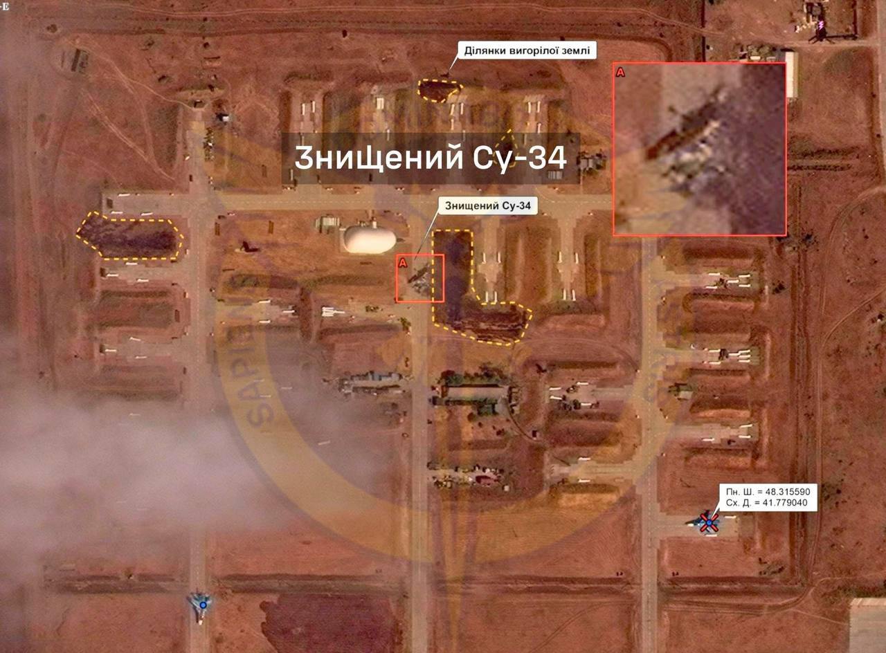 Ще два російські літаки Су-34, ймовірно, пошкоджені уламками. Повністю вдалося знищити склад авіаційного озброєння. Про це повідомляють в ГУР.