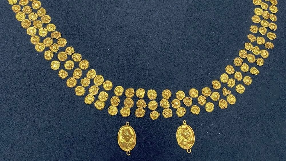 «Скіфське золото» — це понад 565 предметів з музейного фонду України, здебільшого археологічні знахідки, вартість яких становить близько 10 мільйонів євро. Серед артефактів: церемоніальний шолом, коштовне каміння, мечі стародавніх греків і скіфів.