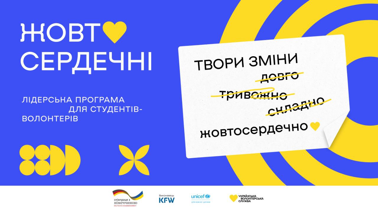 Громадська організація «Українська волонтерська служба» спільно з Дитячим фондом ООН запускають програму для студентів «Жовтосердечні», яка спрямована на розвиток волонтерства в Україні. Про це повідомляють організатори.