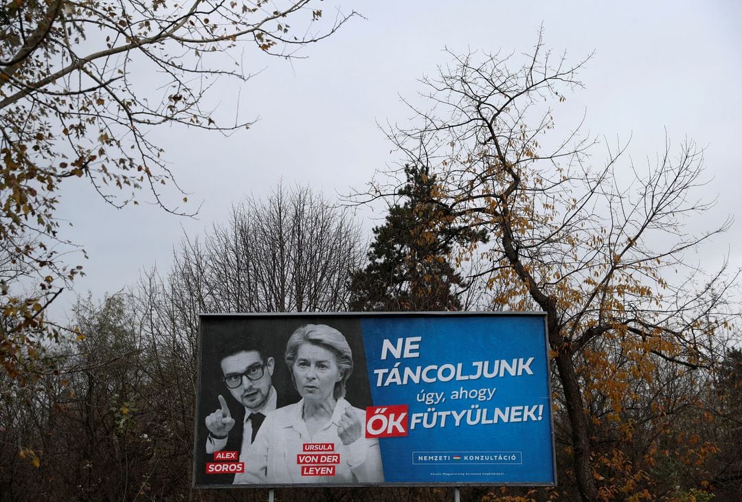 Провладна партія Угорщини «Фідес» встановила в Будапешті білборди з написом «Годі танцювати під їхні дудки». На них зображена Урсула фон дер Ляйєн разом із Алексом Соросом (син Джорджа Сороса). Він — єврей, тому деякі критики вважають, що в пропаганді Орбана його негативно висвітлений образ є доказом антисемітизму. Про це пише Reuters.