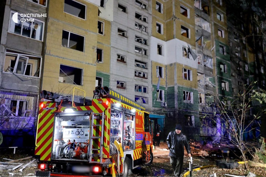 Нагадаємо, вчора ввечері росіяни завдали удару по дев’ятиповерховому будинку в Сумах. Внаслідок атаки загинули 11 людей, з них 2 — діти Ще 55 людей травмовано, з них 8 дітей.
