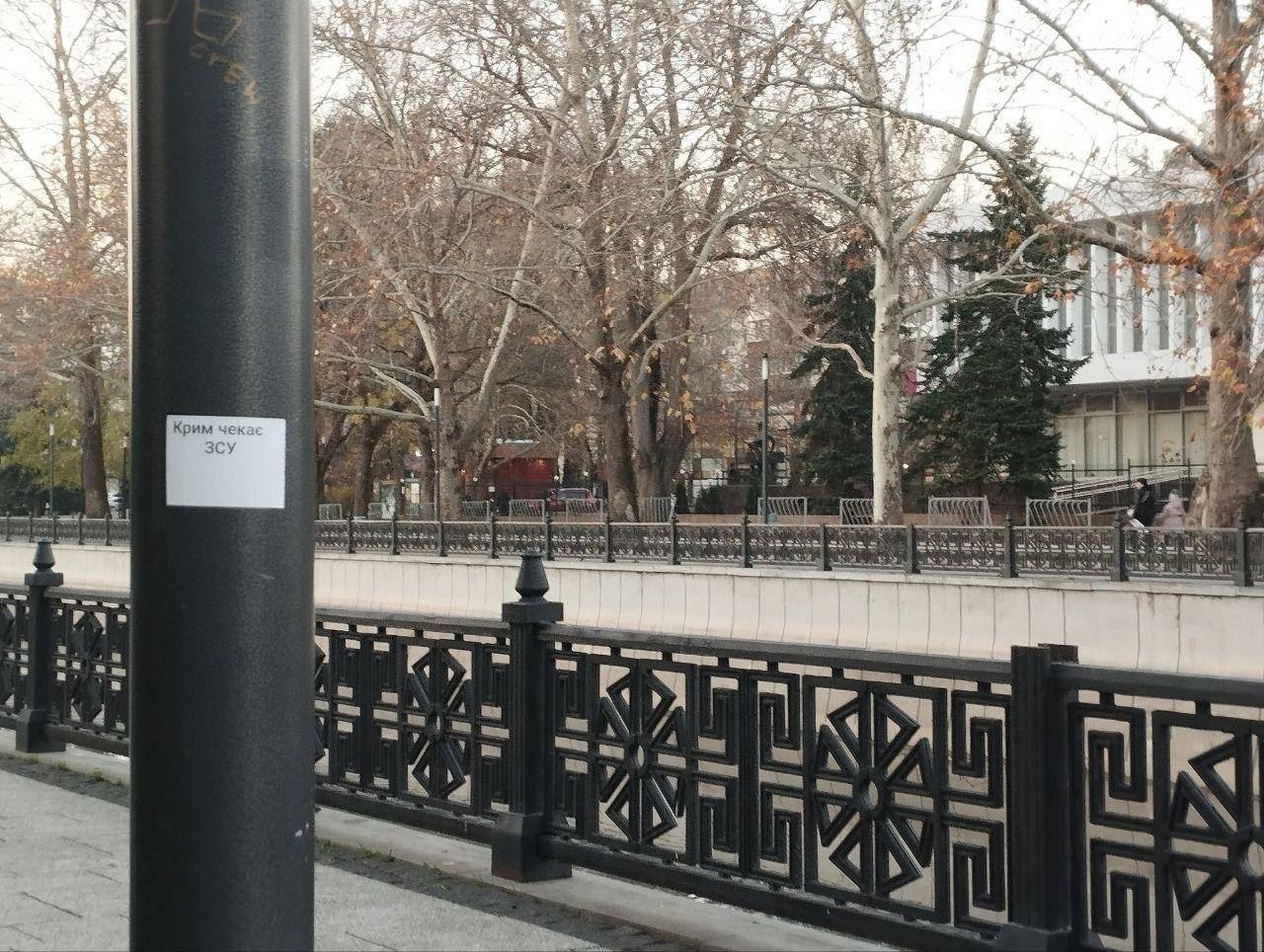 Жителі Сімферополя, Севастополя, Бахчисарая, Донецька, Мелітополя та Генічеська провели акцію до Дня Гідності та Свободи. Про це повідомила «Жовта стрічка».