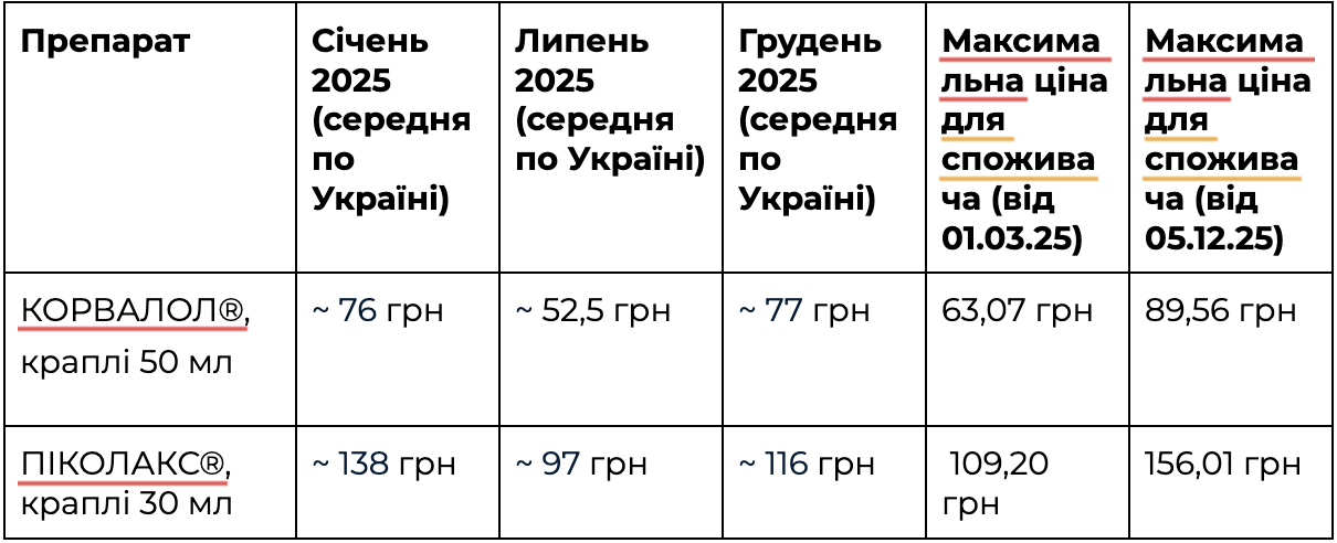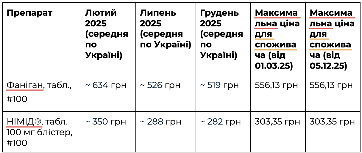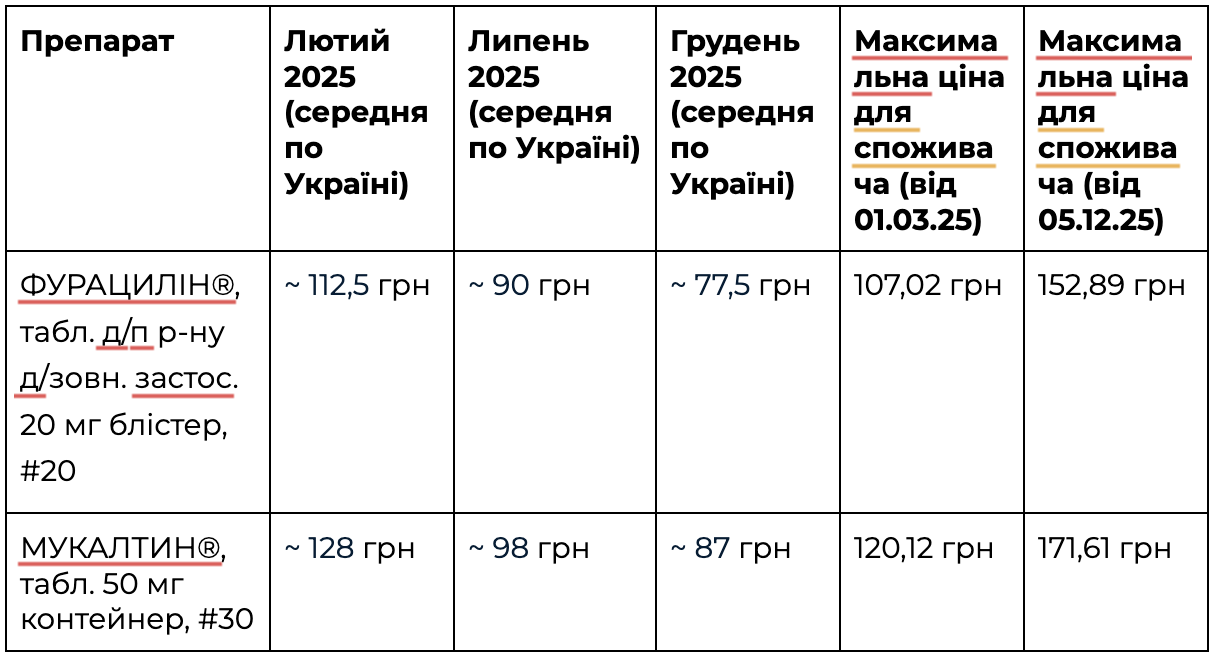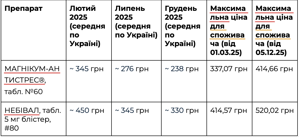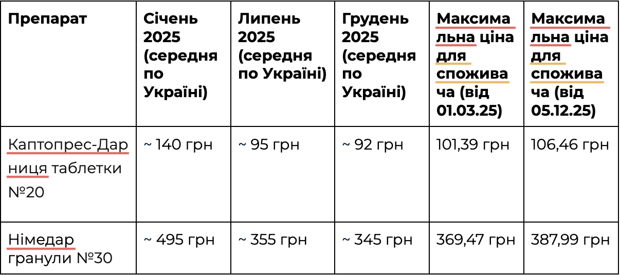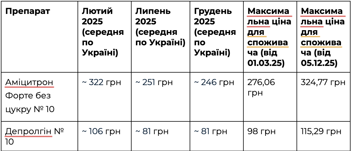 На 16 із 18 аналізованих препаратів ціни на кінець 2025 року були нижчими порівняно з його початком. На два інші вартість зменшувалася впродовж року, проте наприкінці стала вищою — у межах однієї гривні. То в чому ж полягає проблема?
